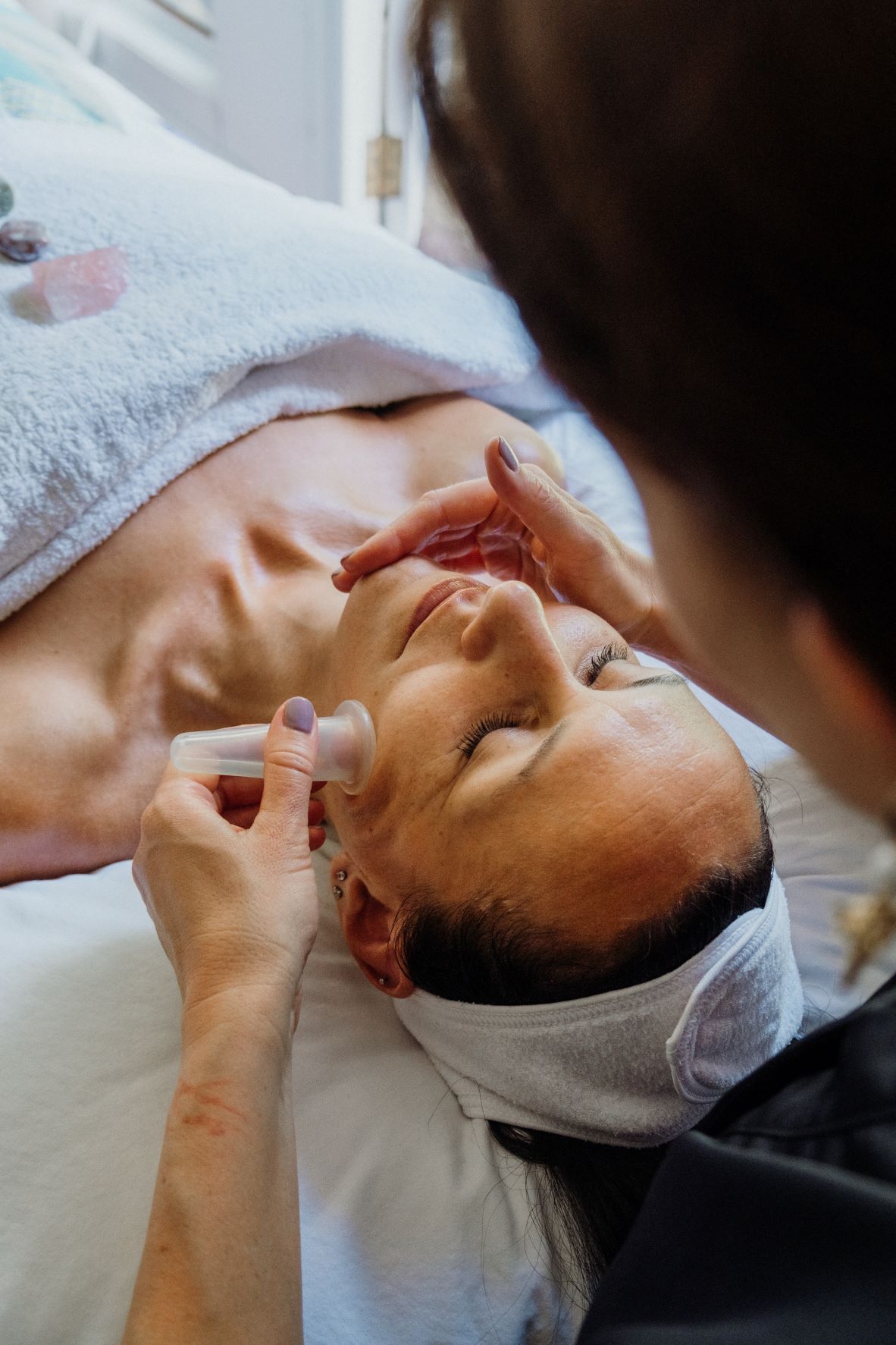 Facial Cupping is incredibly relaxing and at the same time tones muscles and increases blood flow.